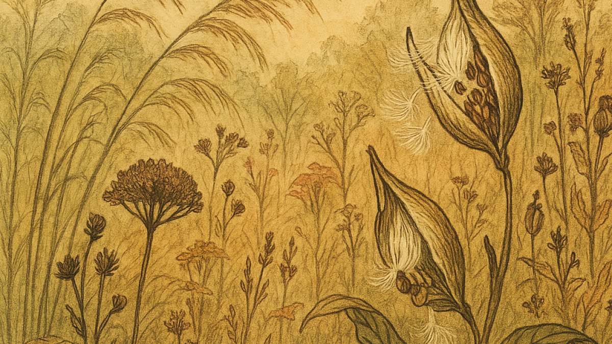 Where bees once hummed and leaves whispered against one another, the air has turned dry and still. Grass blades stand rigid in the wind. Seed pods crack open along invisible seams. I brushed past a stalk and watched a hundred silken seeds drift skyward like a sigh, a subtle reminder that even in passing, plants are architects of tomorrow’s wildness. Touch the rough rib of a poppy pod, or run a finger along last year’s tree ring, that groove was a dry summer, that swelling a season of rain. In these remnants, sunlight and storm are written, awaiting eyes that linger